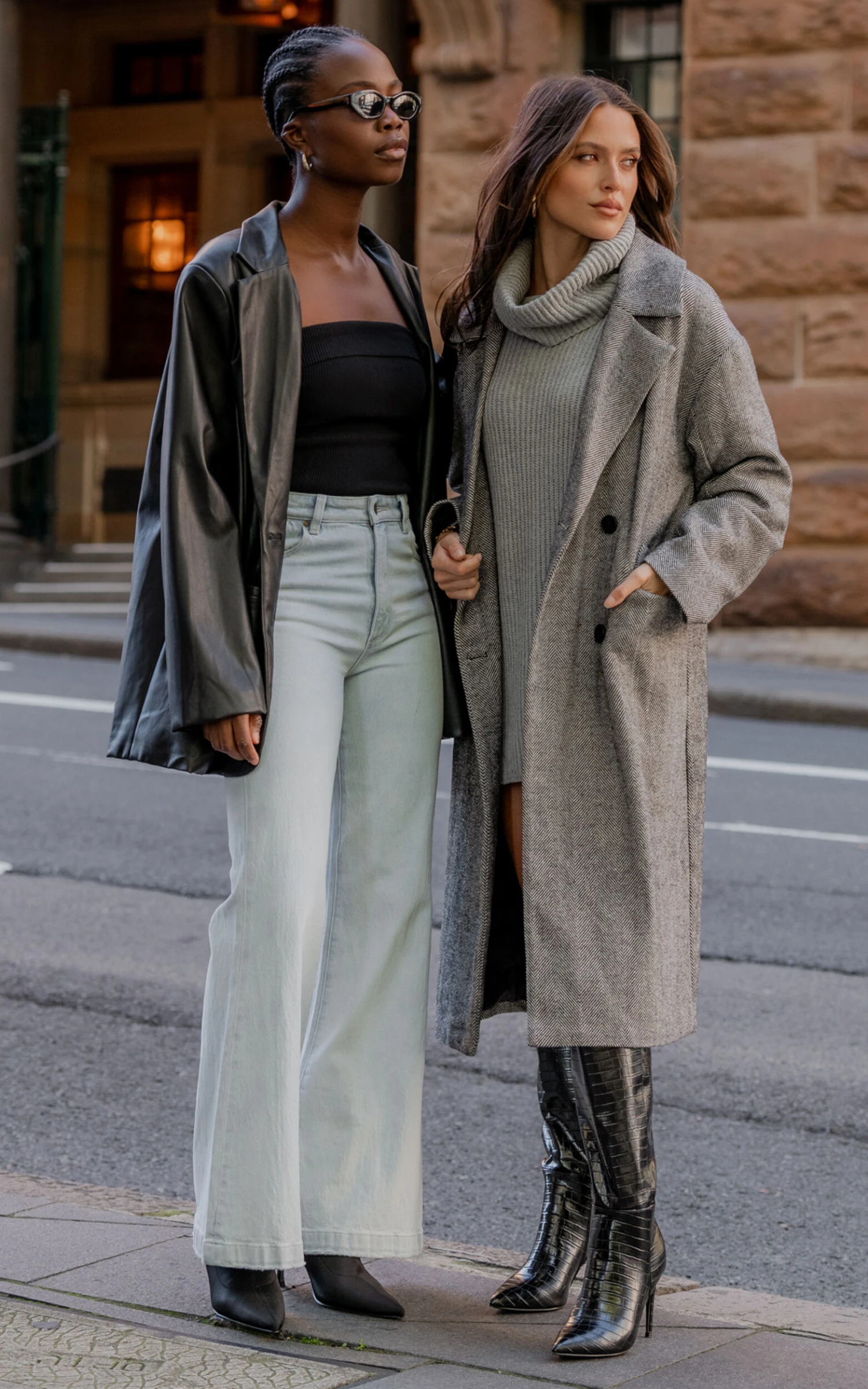 Showpo Anzelle Double Breasted Longline Herringbone Coat In Black And White Herringbone