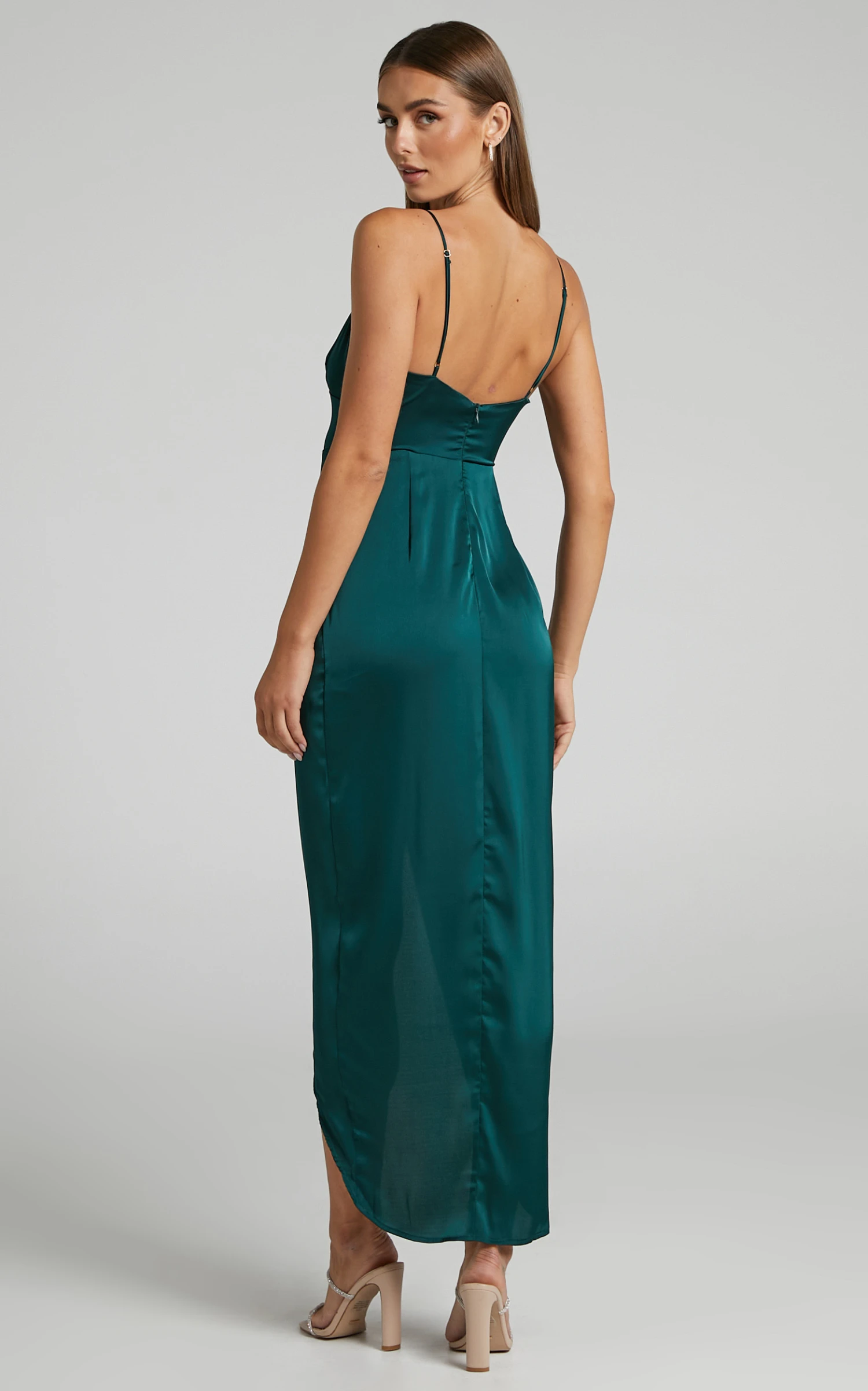 Be your best-dressed self in our Azrael Tulip Dress! This sleek and classy maxi will have everyone fall head over heels for you. Featuring a V-neckline, bust seam gathering detail, fitted waist panel and a high-low tulip skirt with pleat detail, this incredible dress is perfect for any special events and occasions coming up – think formal, parties, weddings and everything in between.