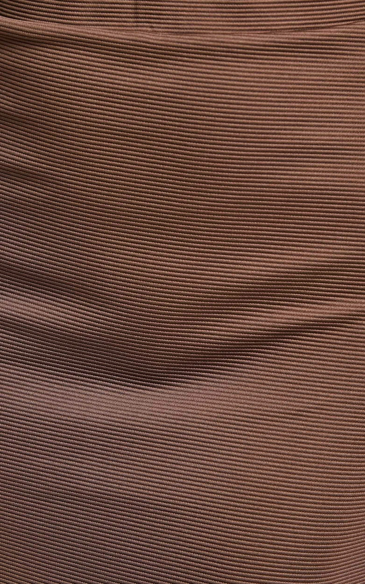 Team it with the Khana Halter Neck Ribbed Crop Top in Brown, mules, hoop earrings and a baguette bag for a gorg look!
