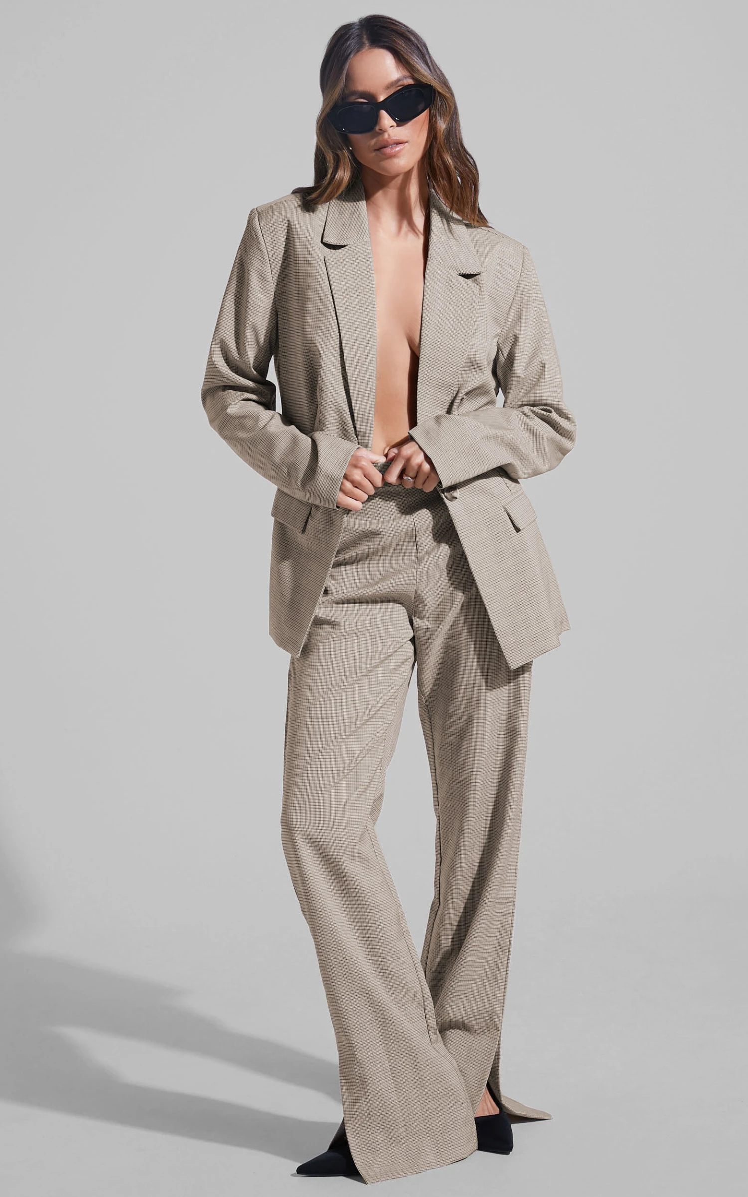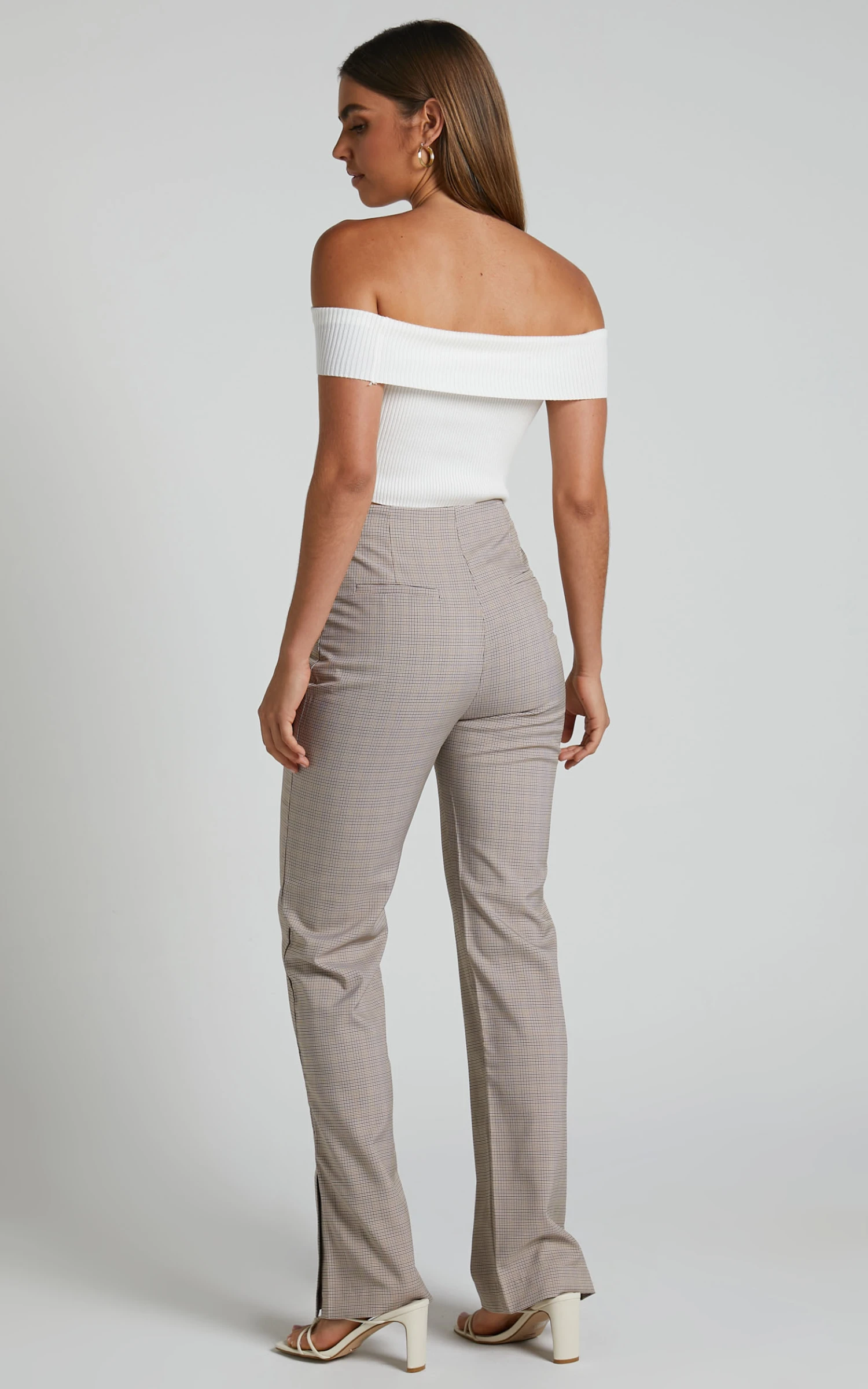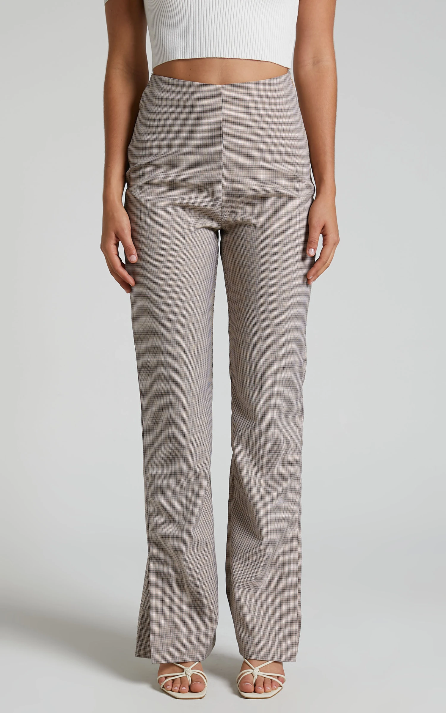 Showpo Khizza – High Waisted Side Split Pant In Brown Pink Check