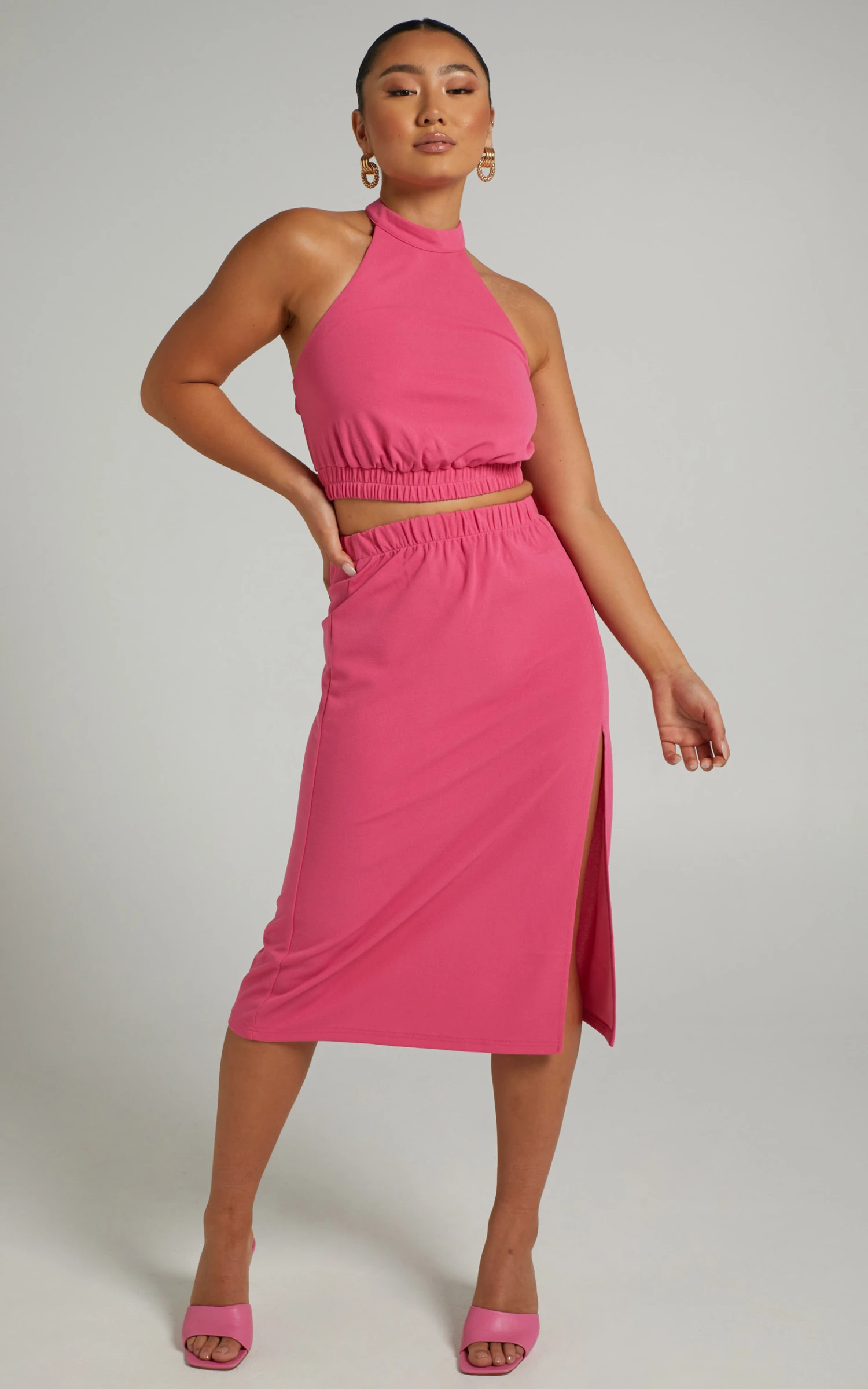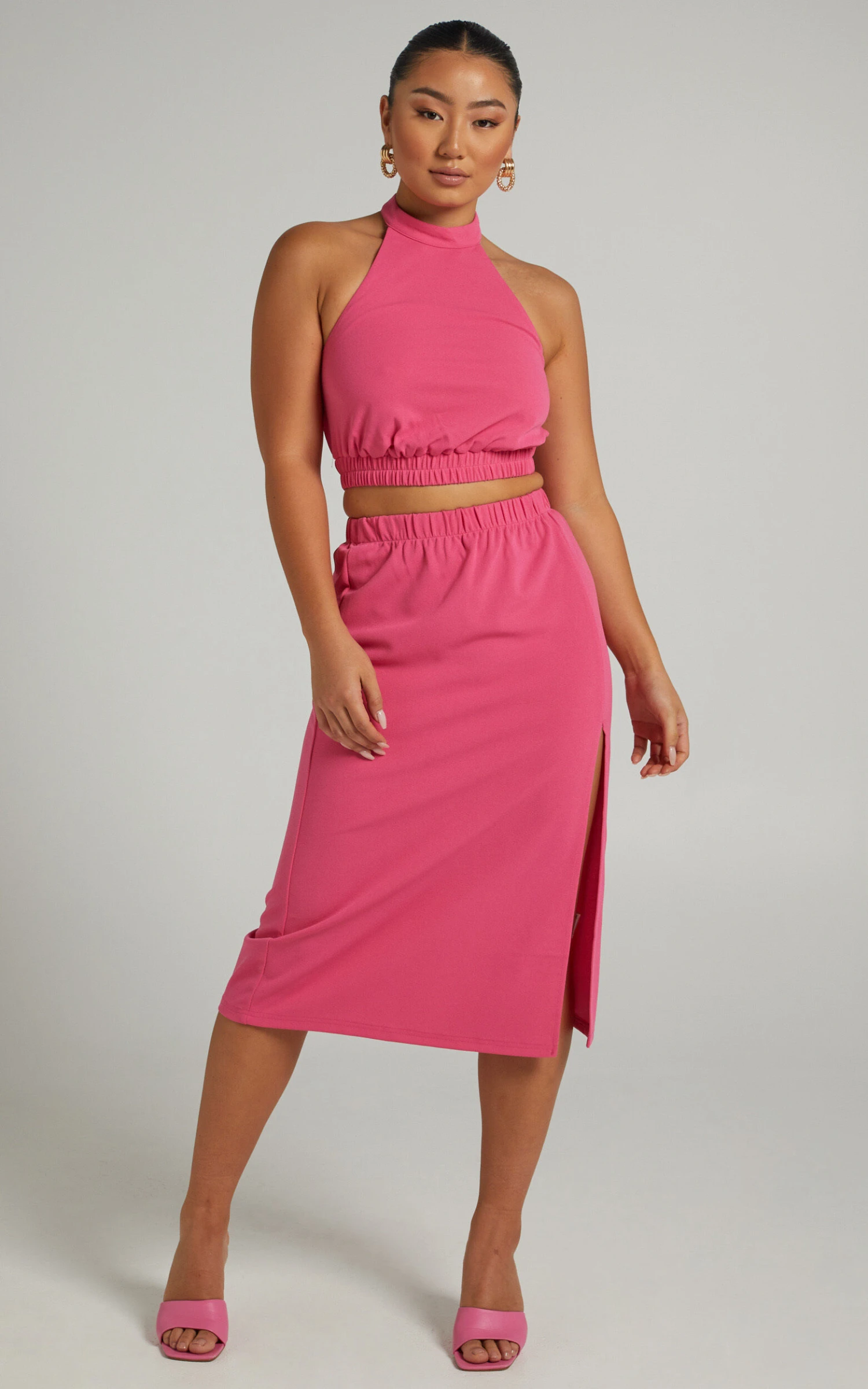 Wear it with our Kiki Halter Top in Hot Pink, heels, your fave hoops and a mini handbag for a matching day party look!
