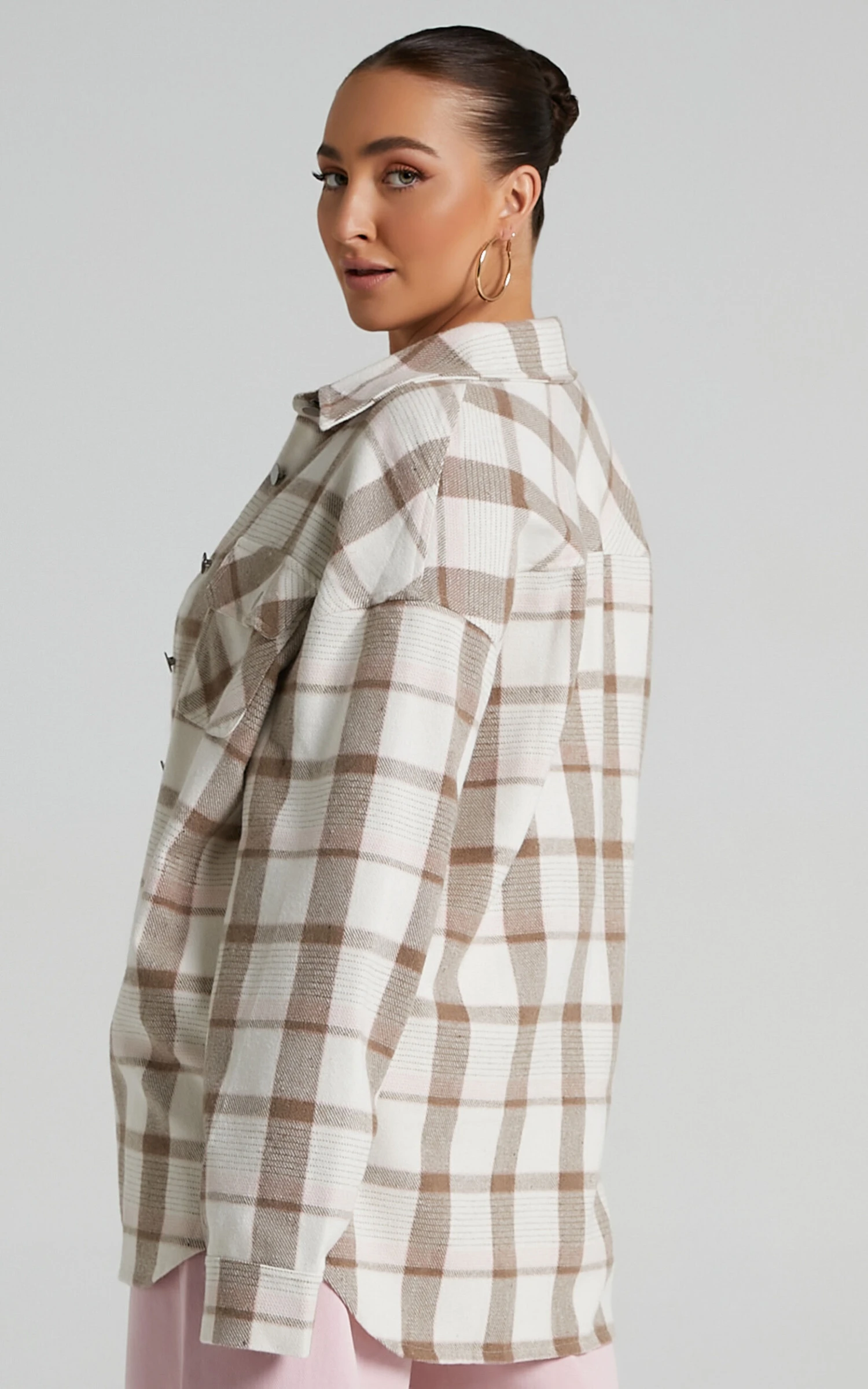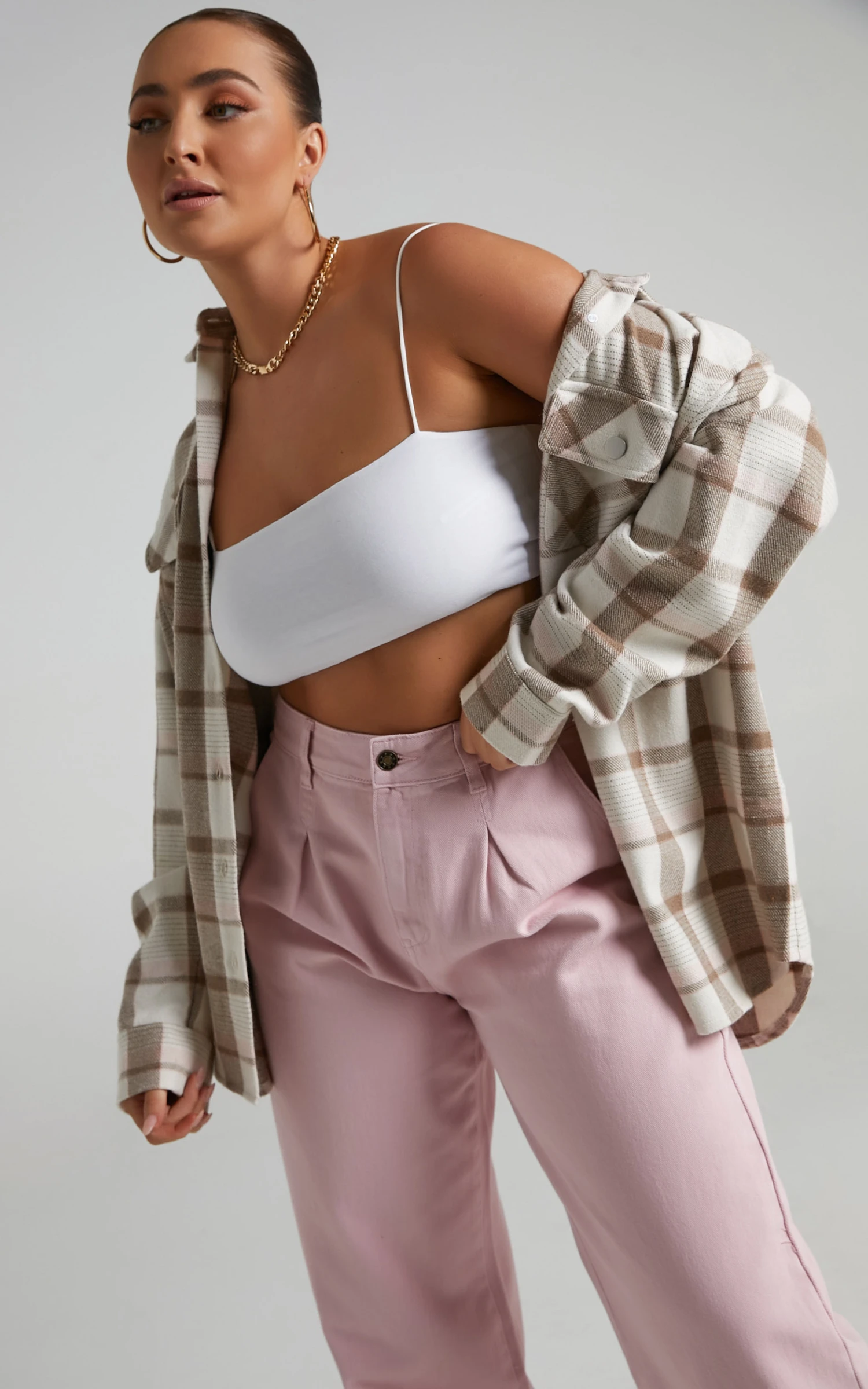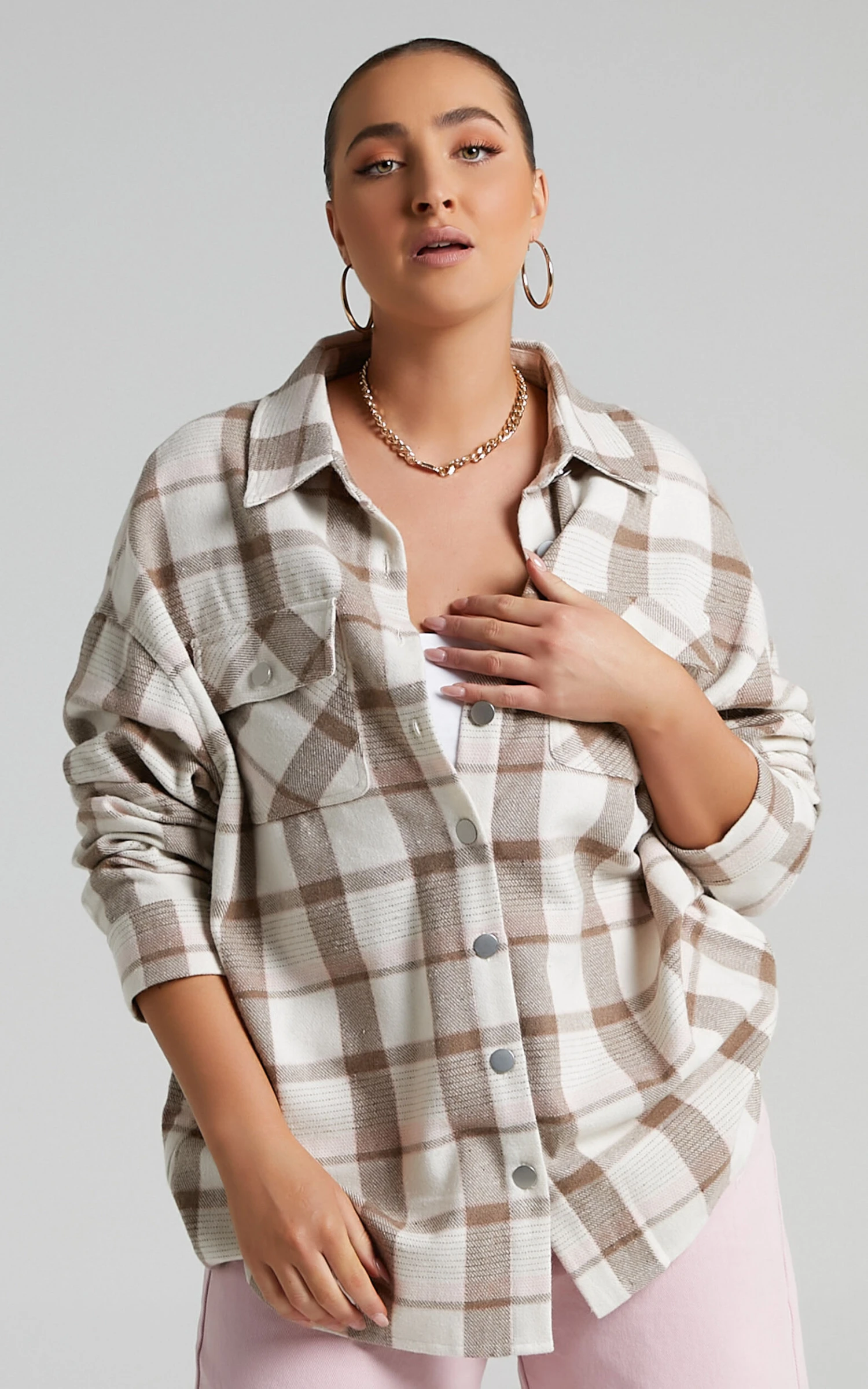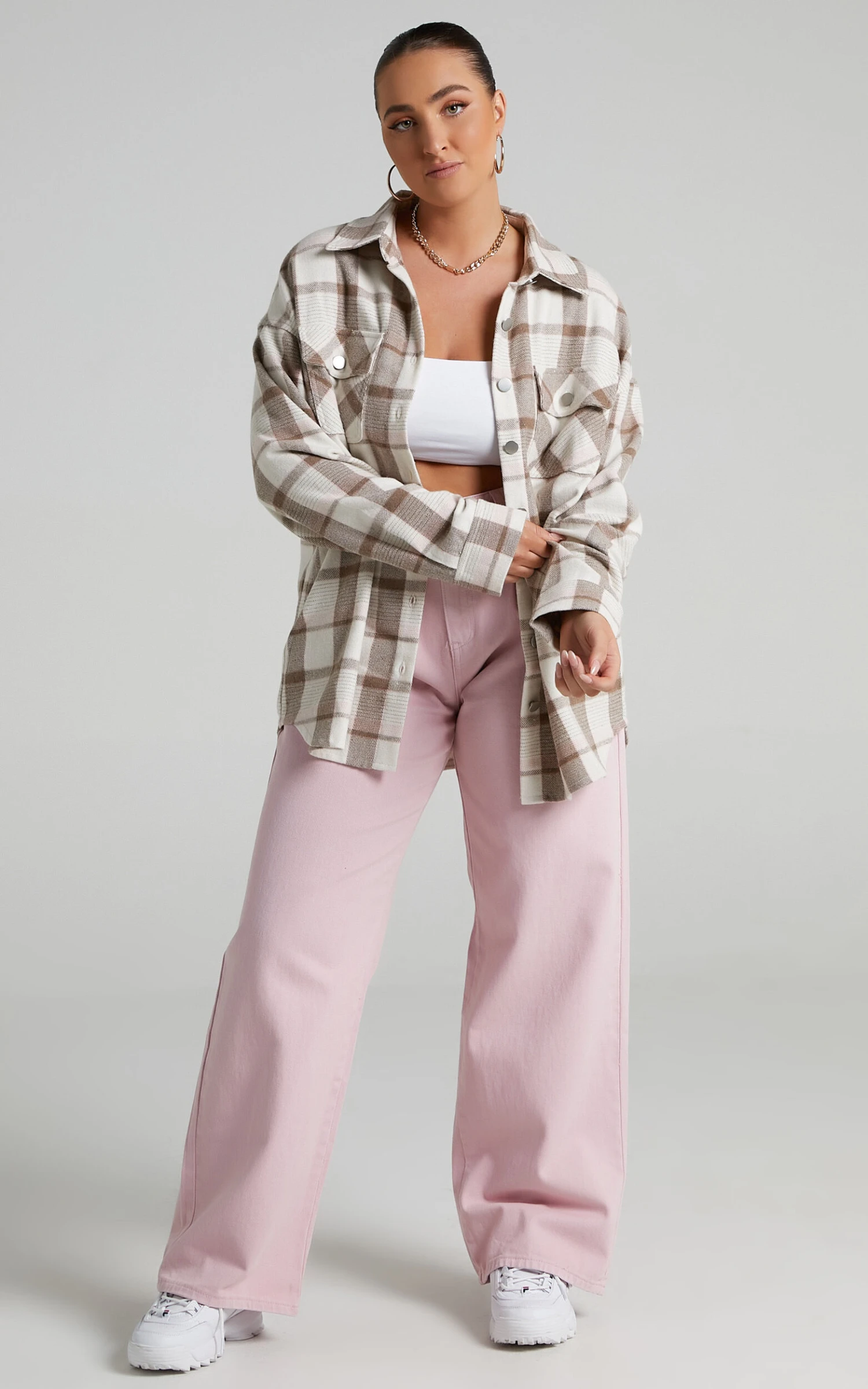 You’ll love how cosy and stylish our Maddyson Check Shacket is! This baby has an oversized relaxed fit and features silver buttons on the front, a pointed collar and functional patch pockets. It’s such an easy piece to style, and perfect to throw on and wear all year ’round. Wear it to a casual coffee date with a basic tank top, high waist jeans, chunky sneakers and a mini handbag for a sweet day look!