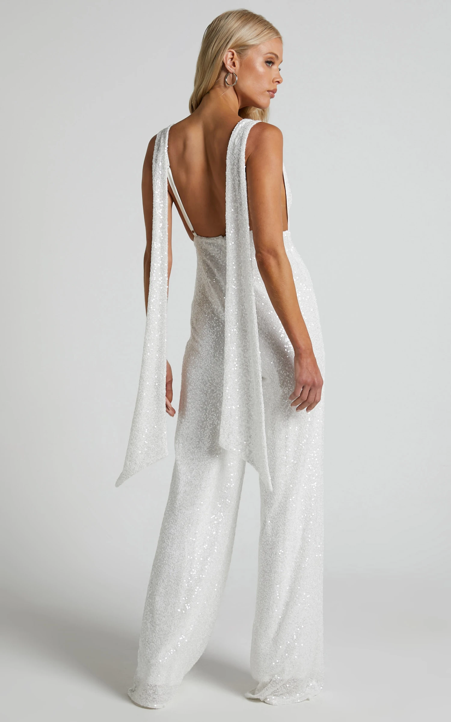 ‘Wow the crowd in our Malisha Cowl Neck Backless Jumpsuit In White! This stunning piece is perfect for those party nights where you want to make a statement. The cowl neck adds an extra touch of playfulness while the backless design shows off your gorgeous curves. With its wide leg style, this jumpsuit is both comfortable and stylish – perfect for any autumn occasion.