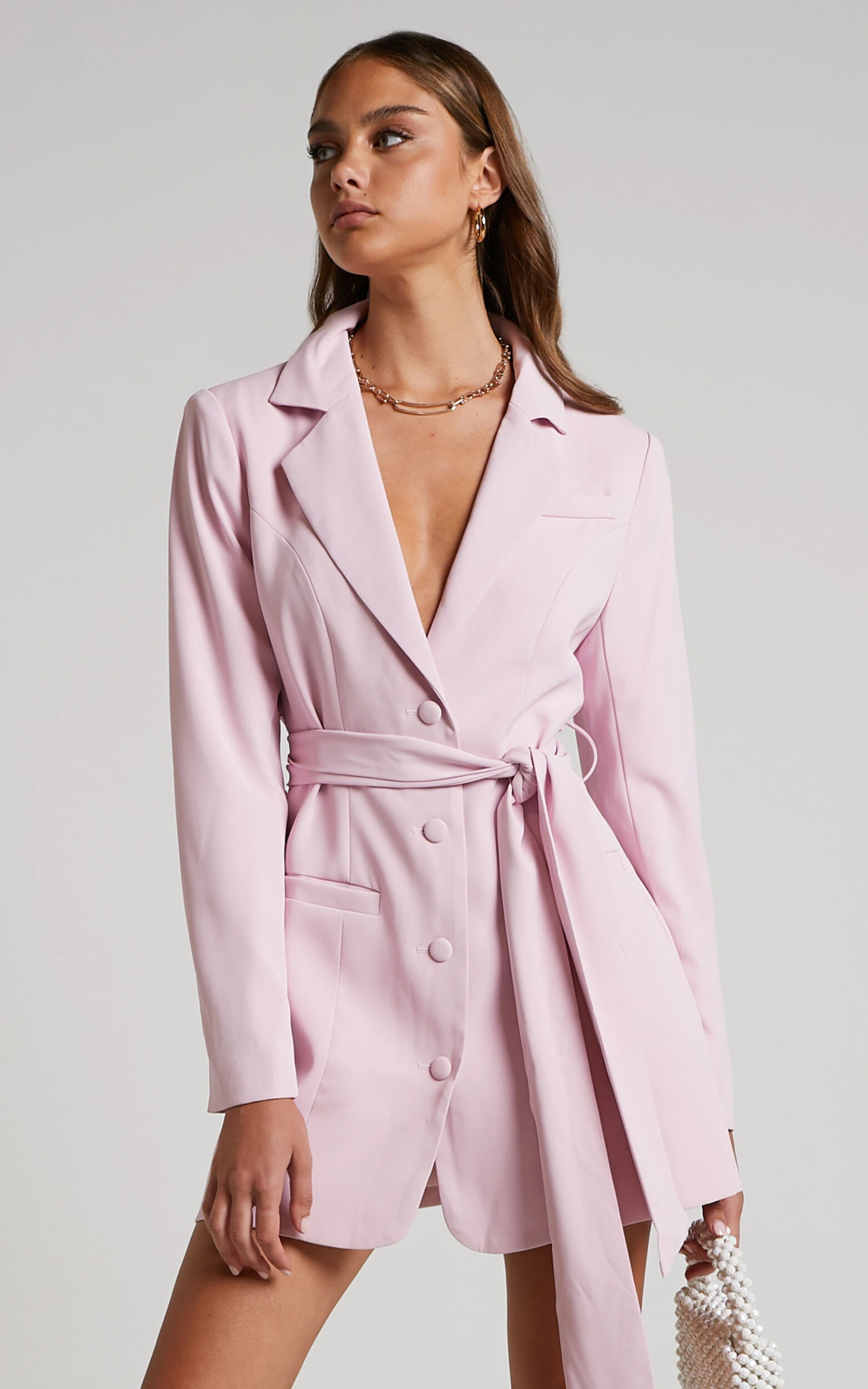 How chic is our Mhina Blazer Dress?! This one-and-done outfit will have you looking smart AF for those upcoming dinner dates and dressy occasions. Made with a tailored silhouette, it features a notched collar, faux button details and a long waist tie designed to secure at the front in a small knot. Complete the look with heels and a statement top handle bag!