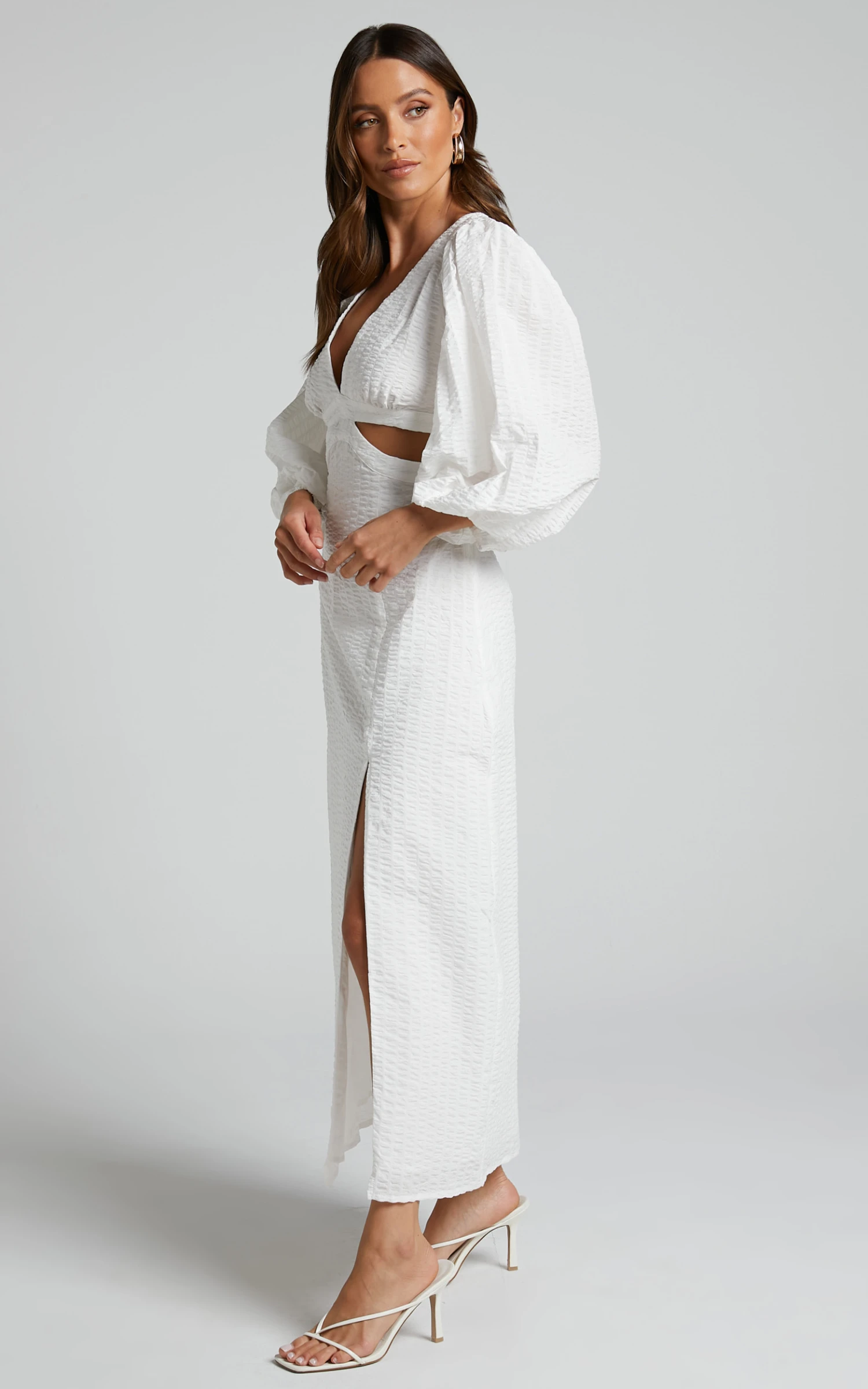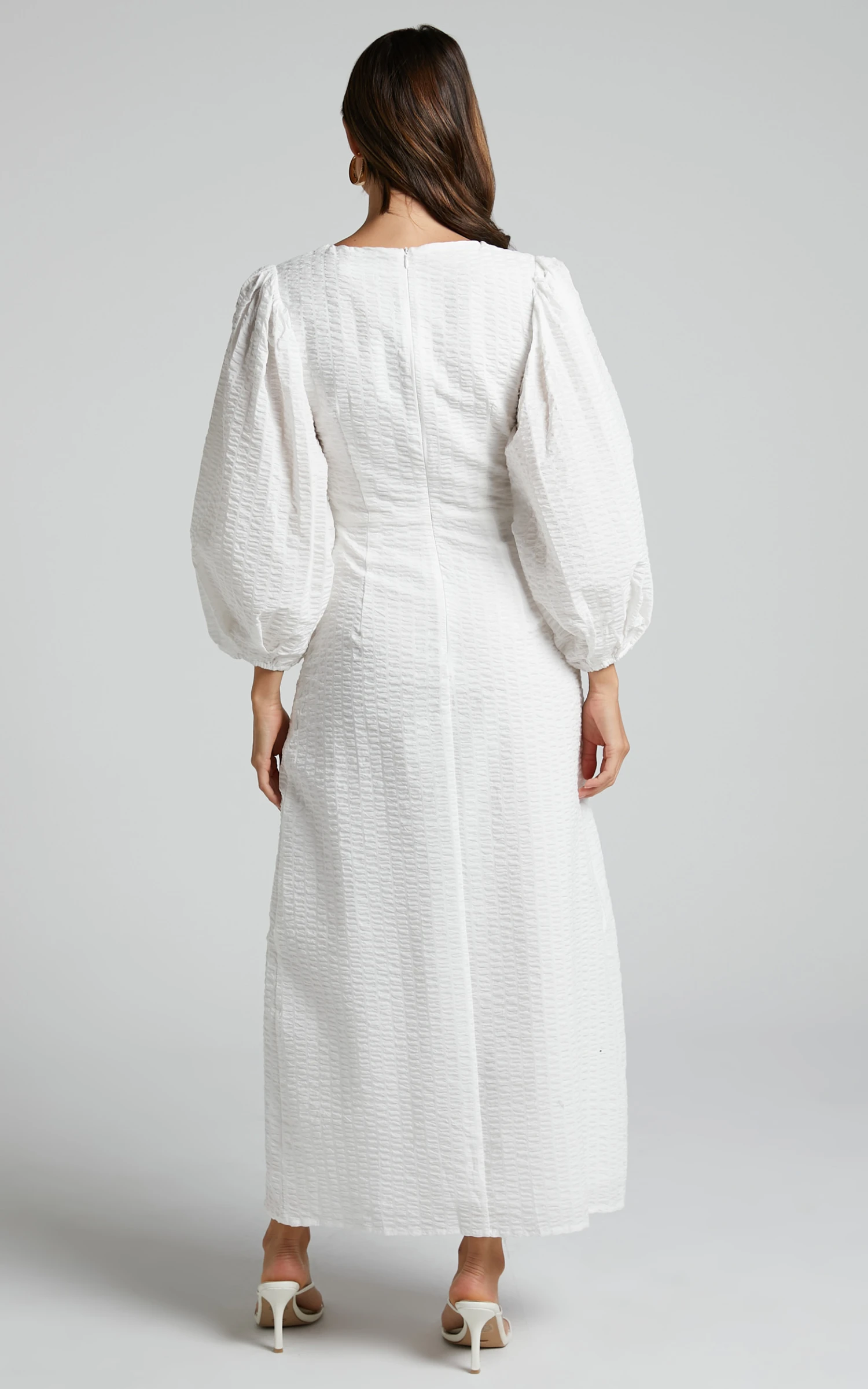 - Long puff sleeves with elasticated cuffs (can be styled to sit at elbow)