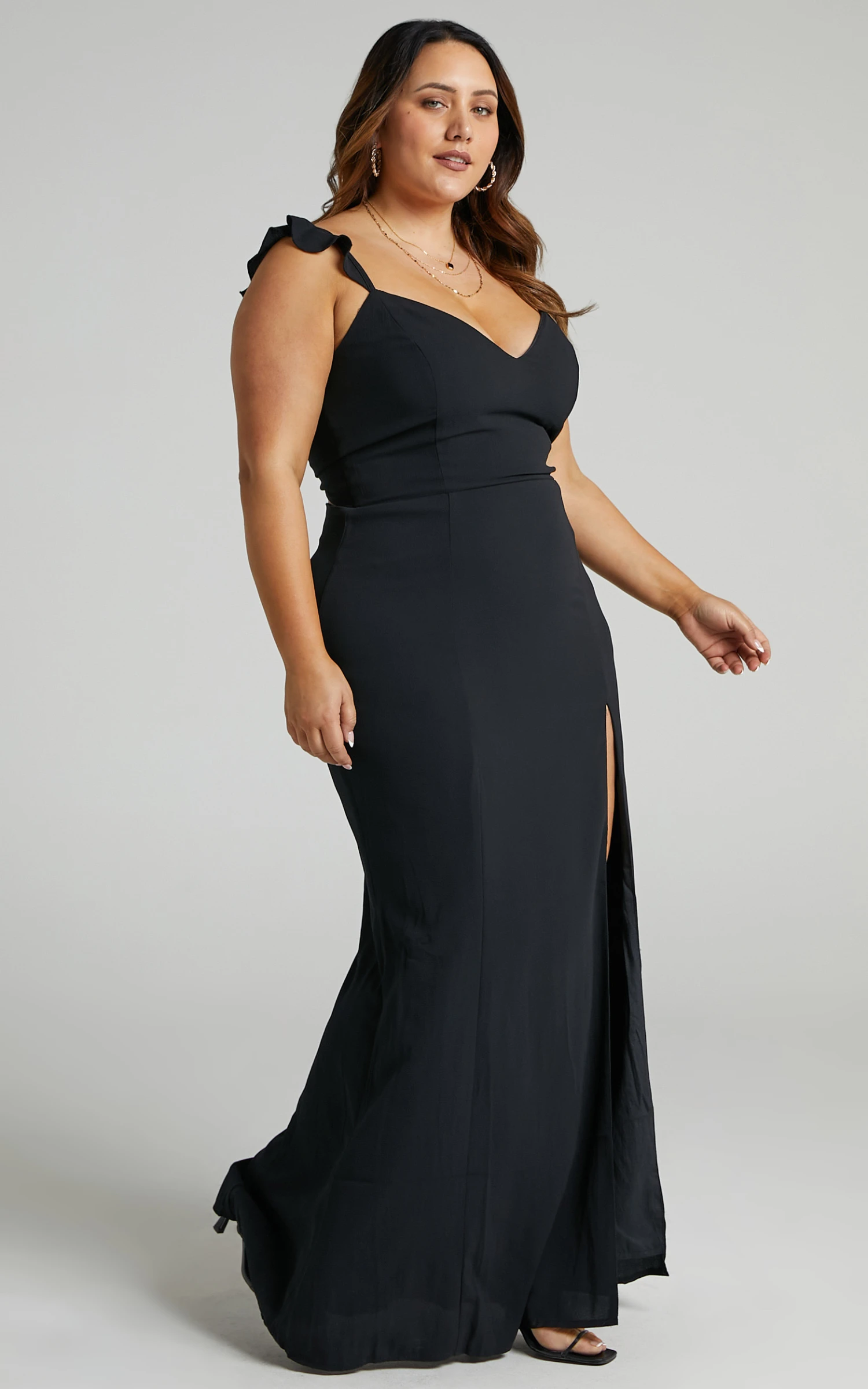 Look stylish and elegant in our More Than This Dress! This gorgeous A-line maxi has a fitted bodice that falls into a flattering structured skirt. It features sweet ruffle straps, a deep V-neckline, a thigh split and tie back detail. It’s the perfect get-up for any special events and celebrations coming up. Wear it to a formal party paired with heeled sandals and your favourite jewellery to complete the look!