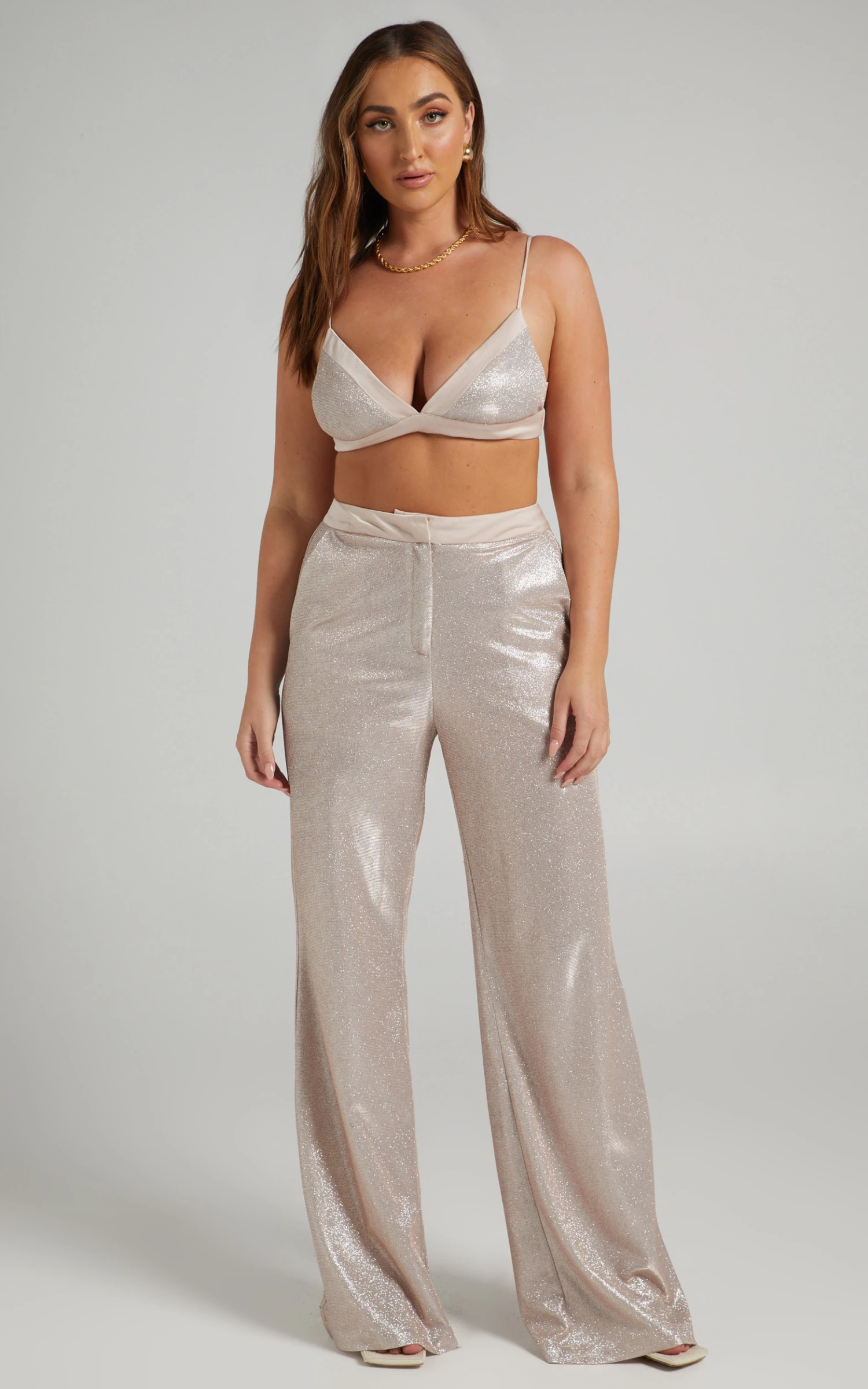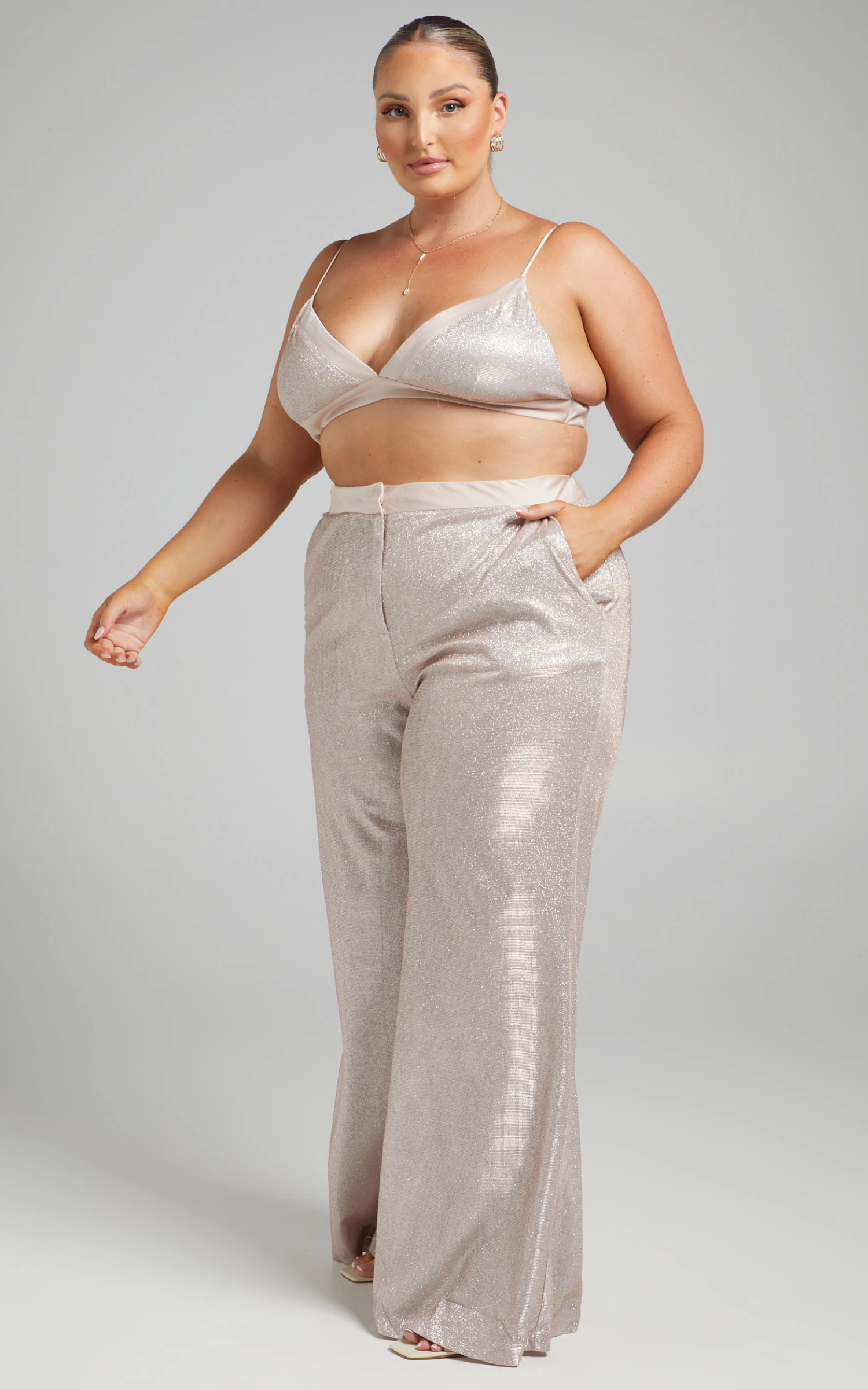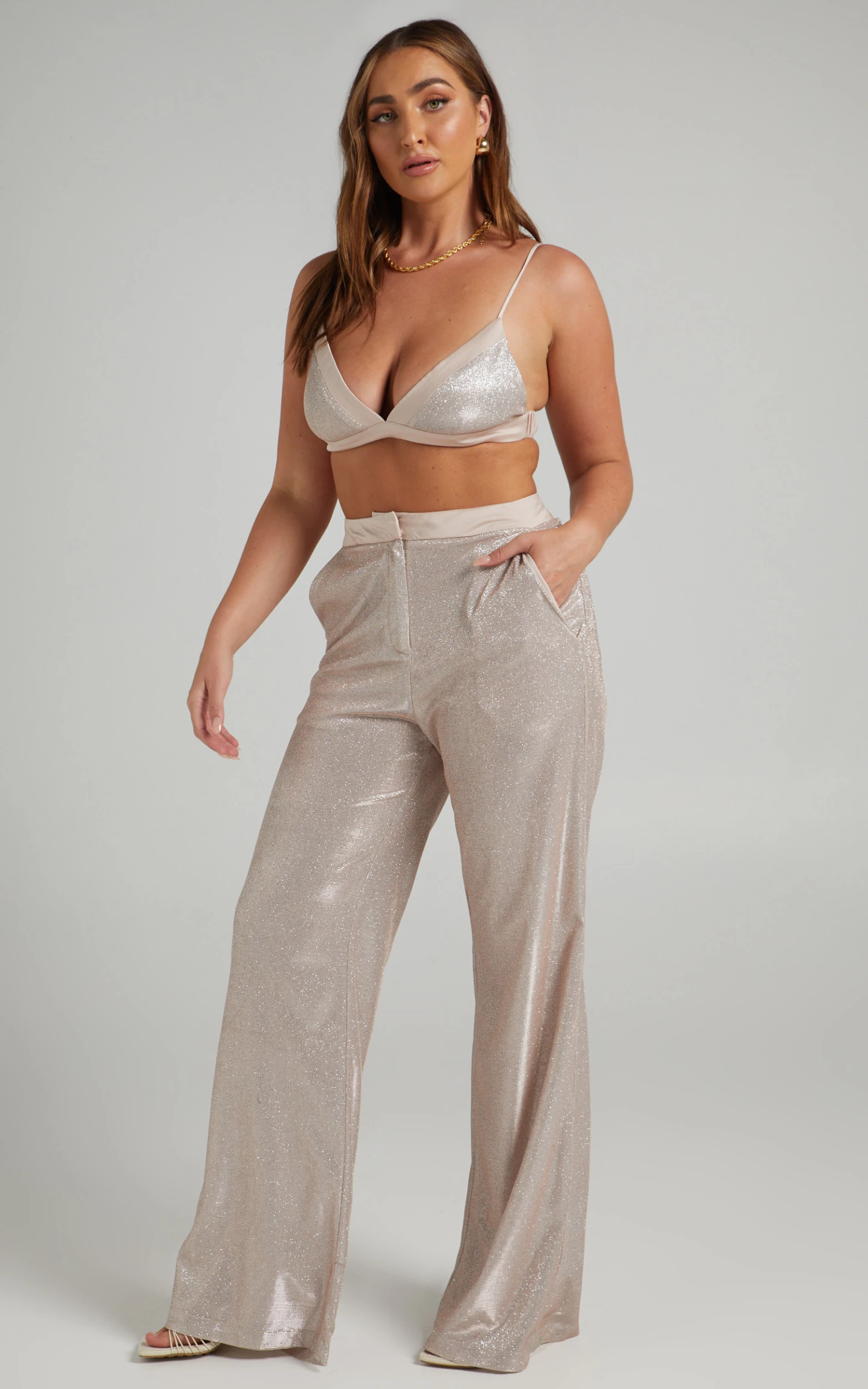 We can’t stop at sparkly dresses and skirts – we need our Sharleez Pants too! These flattering pants make a statement glitter look oh-so easy to pull off. Cut with a high rise waist and a wide full leg, they’re so fun to team with a party top, oversized blazer and heels!