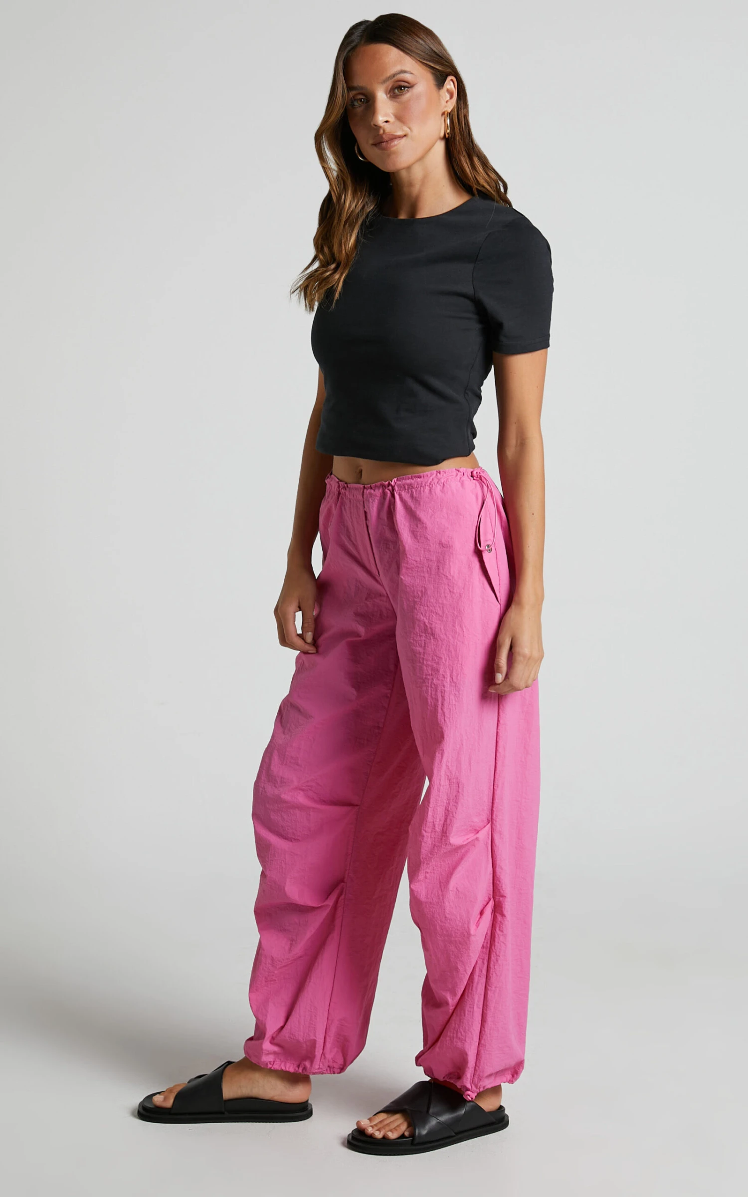 Get ready to make a statement in our Utility Parachute Pant In Candy Pink! These relaxed pants are the perfect addition to your autumn wardrobe and will take you from casual outings to party mode effortlessly. The candy pink color is bold and feminine, making it an ideal choice for any festival or event.