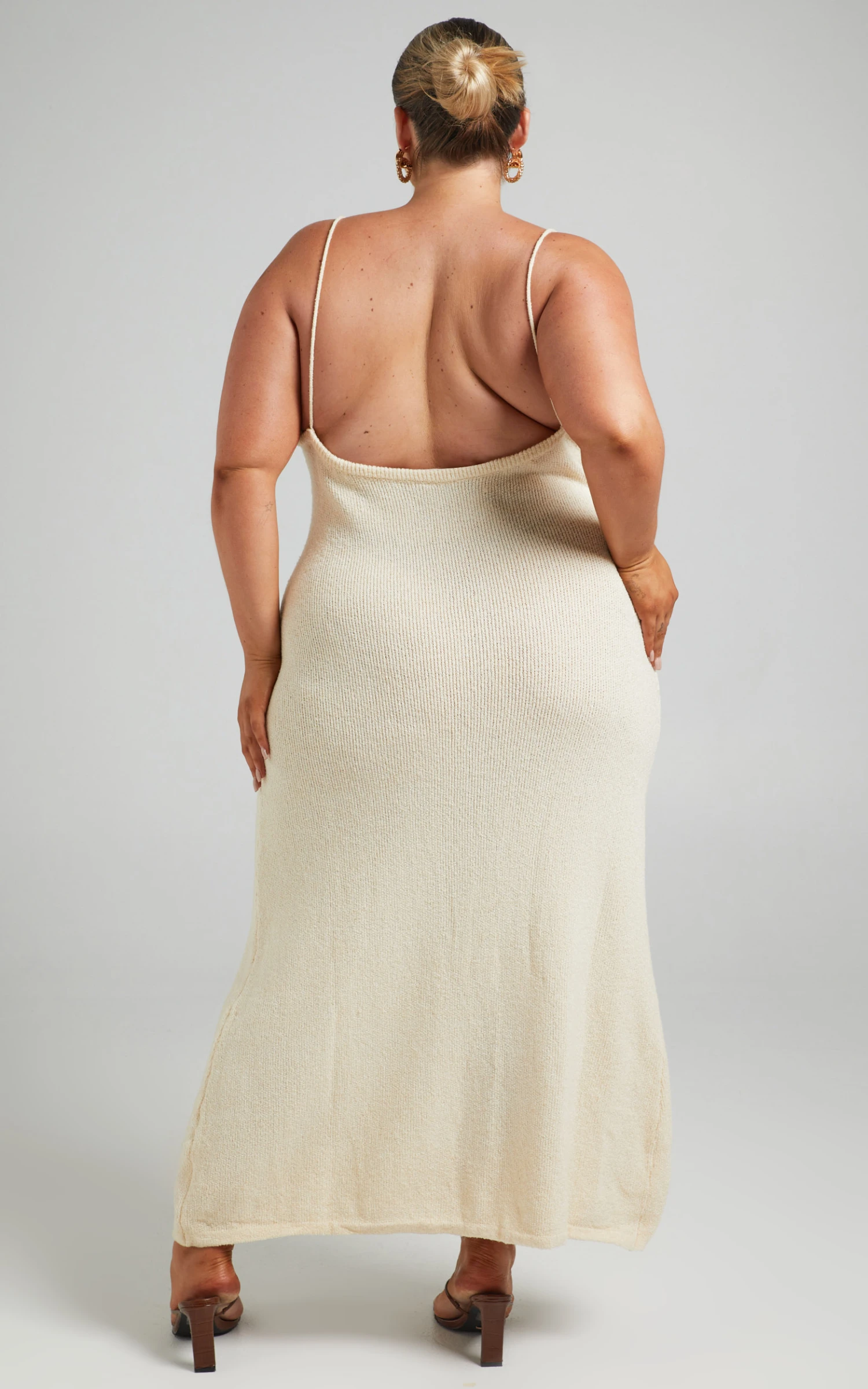 Capture a contemporary spring style with the Yurika Knit Dress! This transeasonal number features a flattering figure-skimming silhouette with a comfortable lightweight knit finish. A softly rounded neckline suspends from slender straps that lead to a scooped neckline at the back. Slip it on with some chic mules and finish off this look with a mini bag!